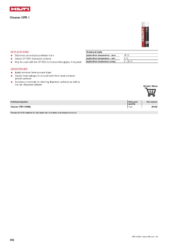 ● Cleans CF-DS1 dispenser surfaces Application temperature - min. 5 °C